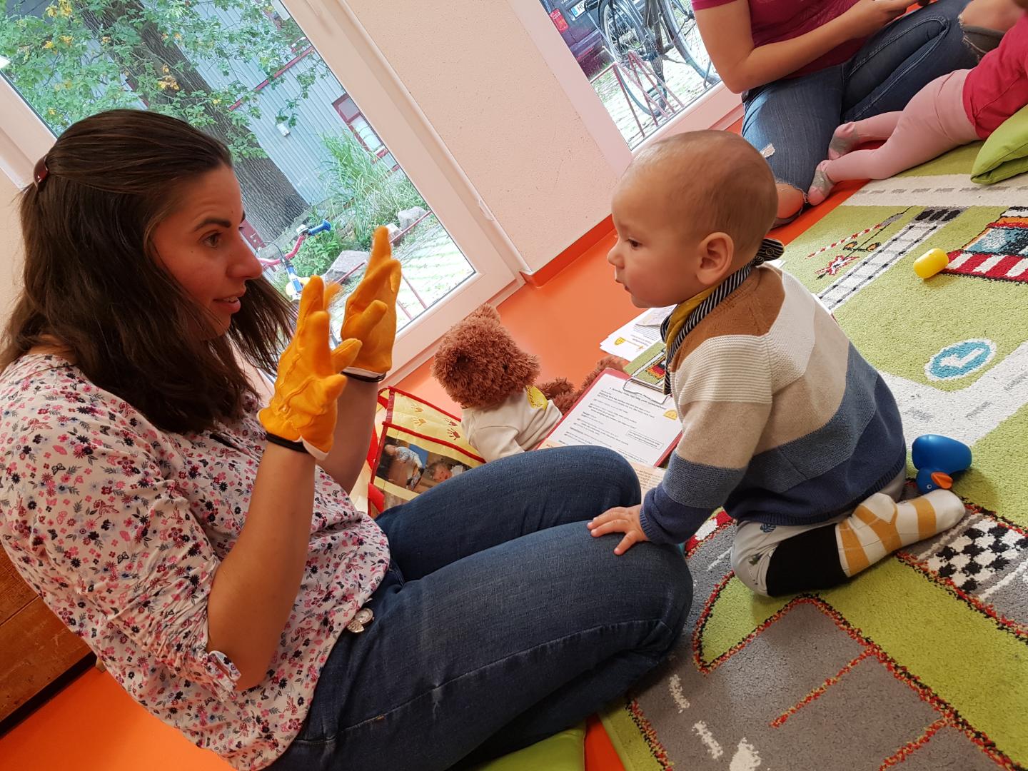 WAS ERWARTET EUCH?In dem Eltern-Kind-Kurs werden wir aktiv Lieder singen, spielen, Knier eiter und Fingerspiele machen und ich begleite alles mit einfachen Babyzeichen. Ihr werdet selbst dabei viele Gebärden kennen lernen und bekommt Tipps, wie ihr diese im Alltag umsetzt, damit schon bald euer Baby weiß, wie es mit Händen kommunizieren kann.